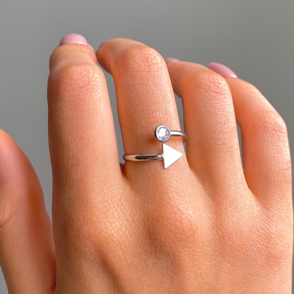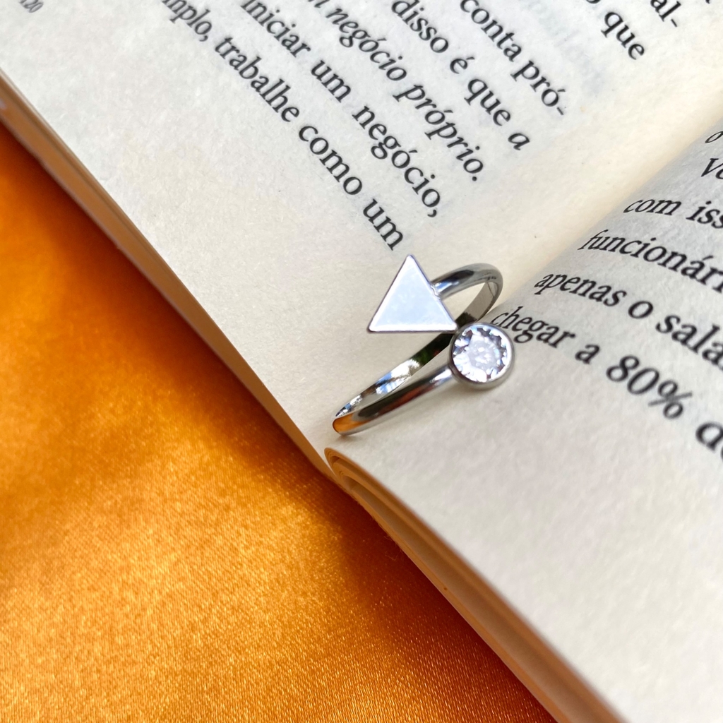 Anel ajustável em aço inox antialérgico prata com triângulo e zircônia